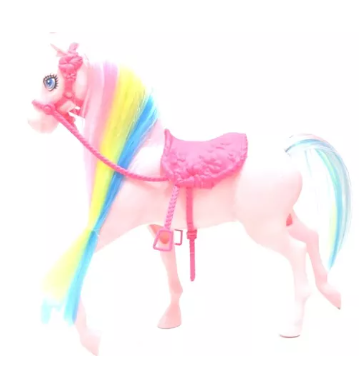Este brinquedo infantil representa um cavalo com crina lisa colorida e uma escova. O cavalo é feito de plástico resistente e possui uma crina lisa colorida que pode ser penteada com a escova.